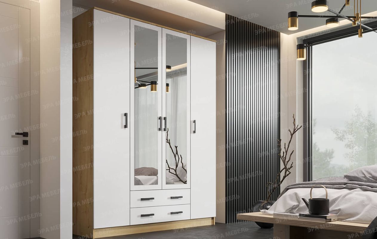 пространства. Конструкция имеет лаконичный внешний вид и множество секций. Шкаф